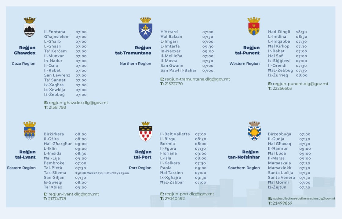 A new national waste collection schedule has been drawn up to streamline door-to-door waste collection around Malta and Gozo in line with what was established in the National Plan on Waste Management.